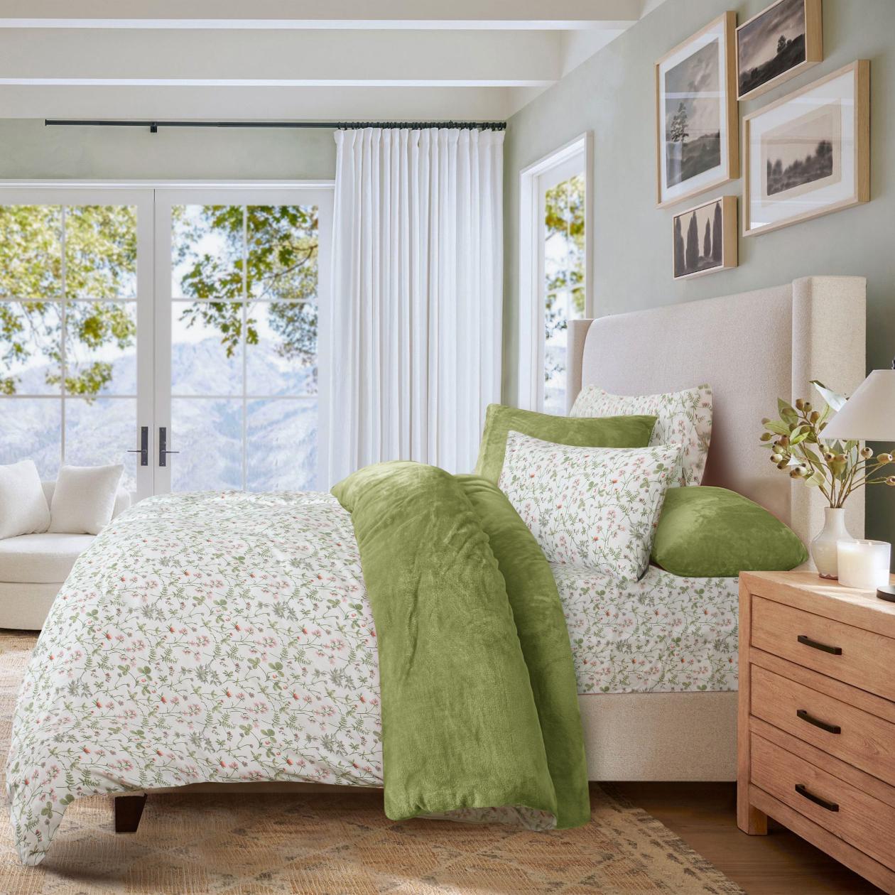 Transform your bedroom into a serene sanctuary with the "Blossom Meadow" Razaye set. This design features delicate, floral patterns in soft pink and green hues, inspired by a peaceful meadow in full bloom. The light, breathable fabric ensures comfort, while the gentle floral motifs evoke a sense of calm and relaxation. Perfect for those who appreciate nature-inspired elegance and a fresh, airy aesthetic in their bedroom décor.