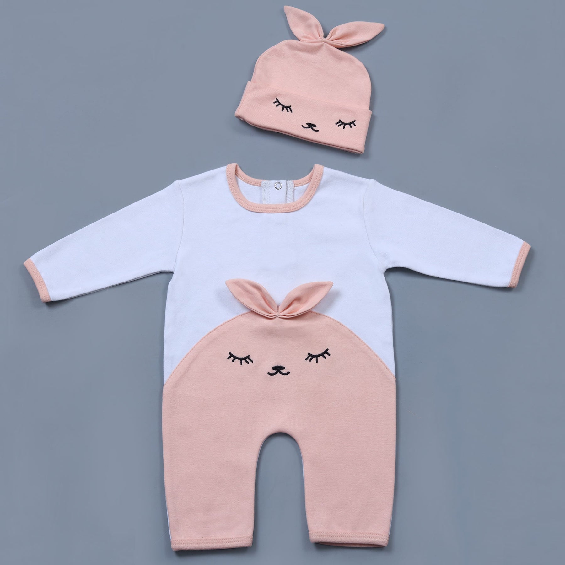 The baby beanie knot embroidered Romper Set is the perfect outfit for your little one! This set includes a romper and a cap, both featuring a beautiful embroidery design. Made with soft and breathable cotton fabric. Available in various sizes for babies from newborn to 18 months old, this set is both stylish and comfortable for any occasion.