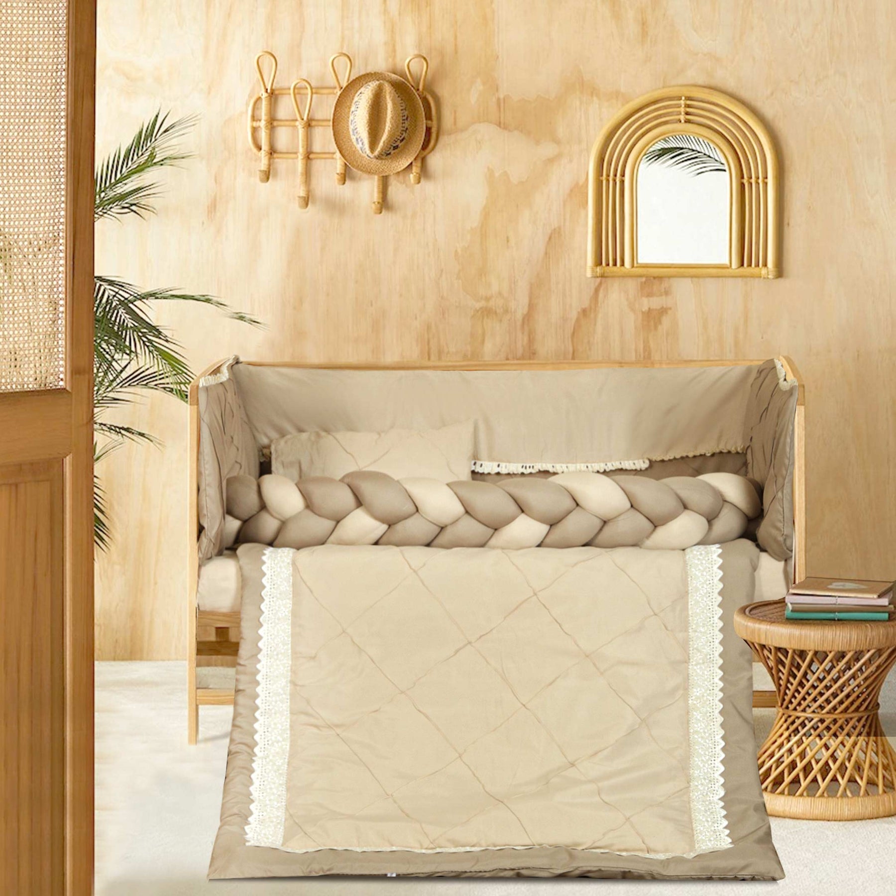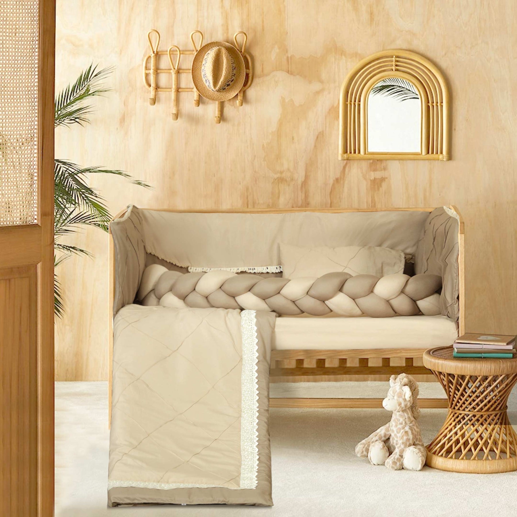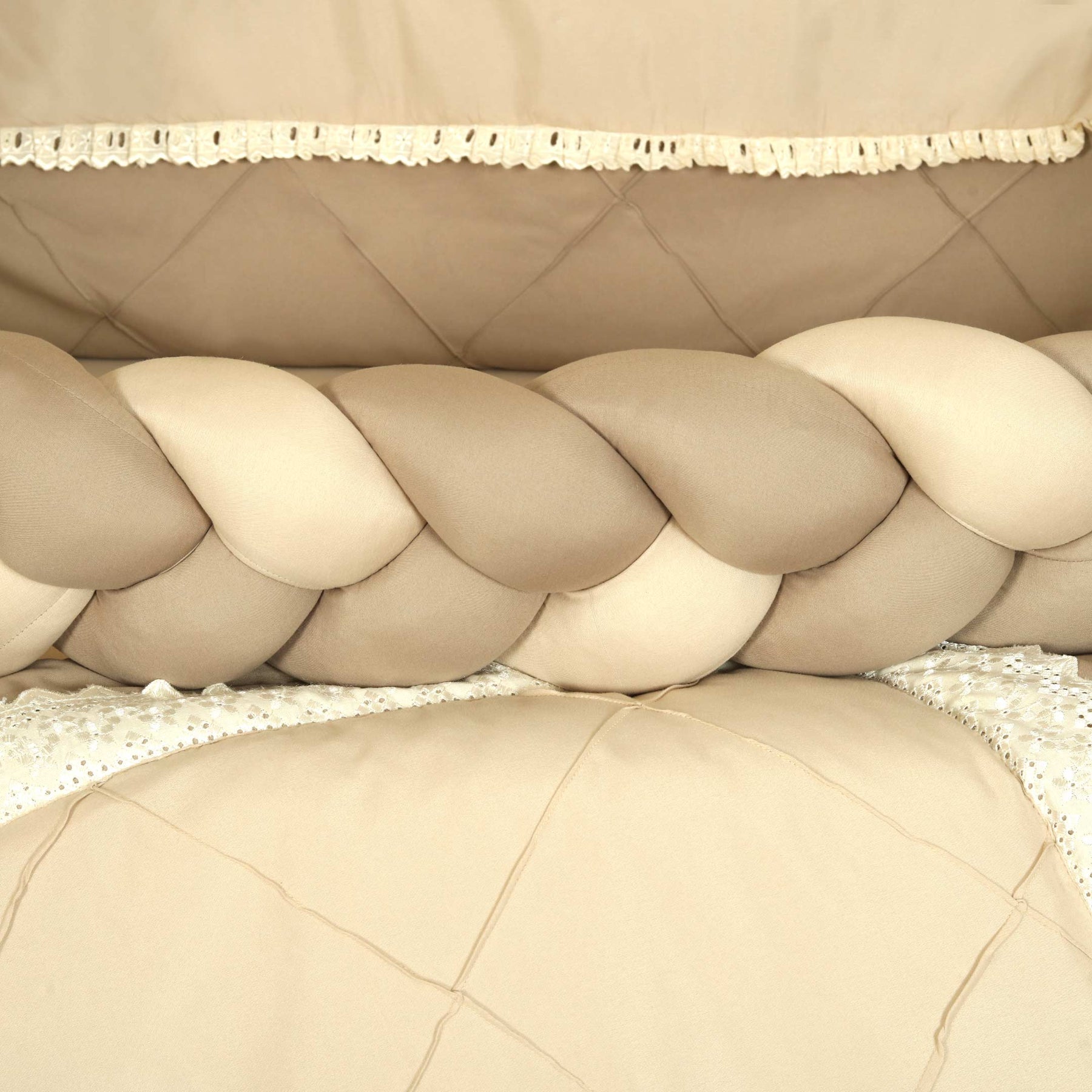 Beautifully designed cot bumpers tied up for the safety of the baby the cot bumper is, in addition to being aesthetic. It covers hard rails and protects the baby from injuries also add braid bumper is a modern protective accessory for your baby. The braid can be wrapped around the outer side of the crib and it will give your baby protection, comfort and a sense of security.