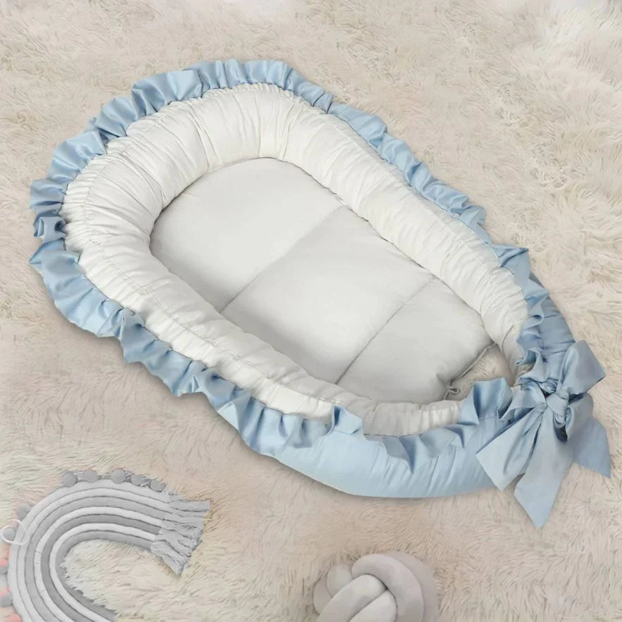 This is a Baby bed made with professional tailoring. It is made for new born babies to provide them with comfort and peaceful sleep.