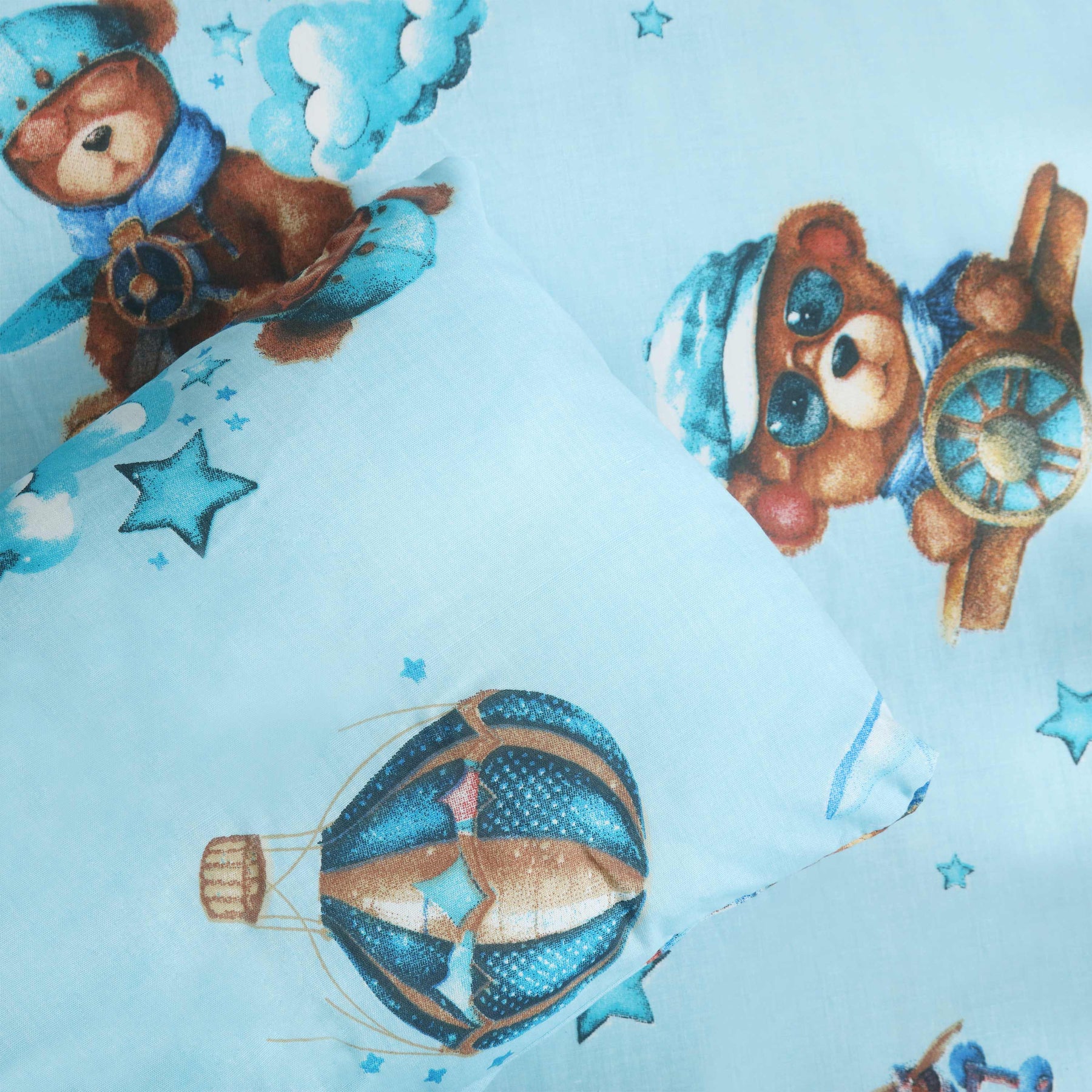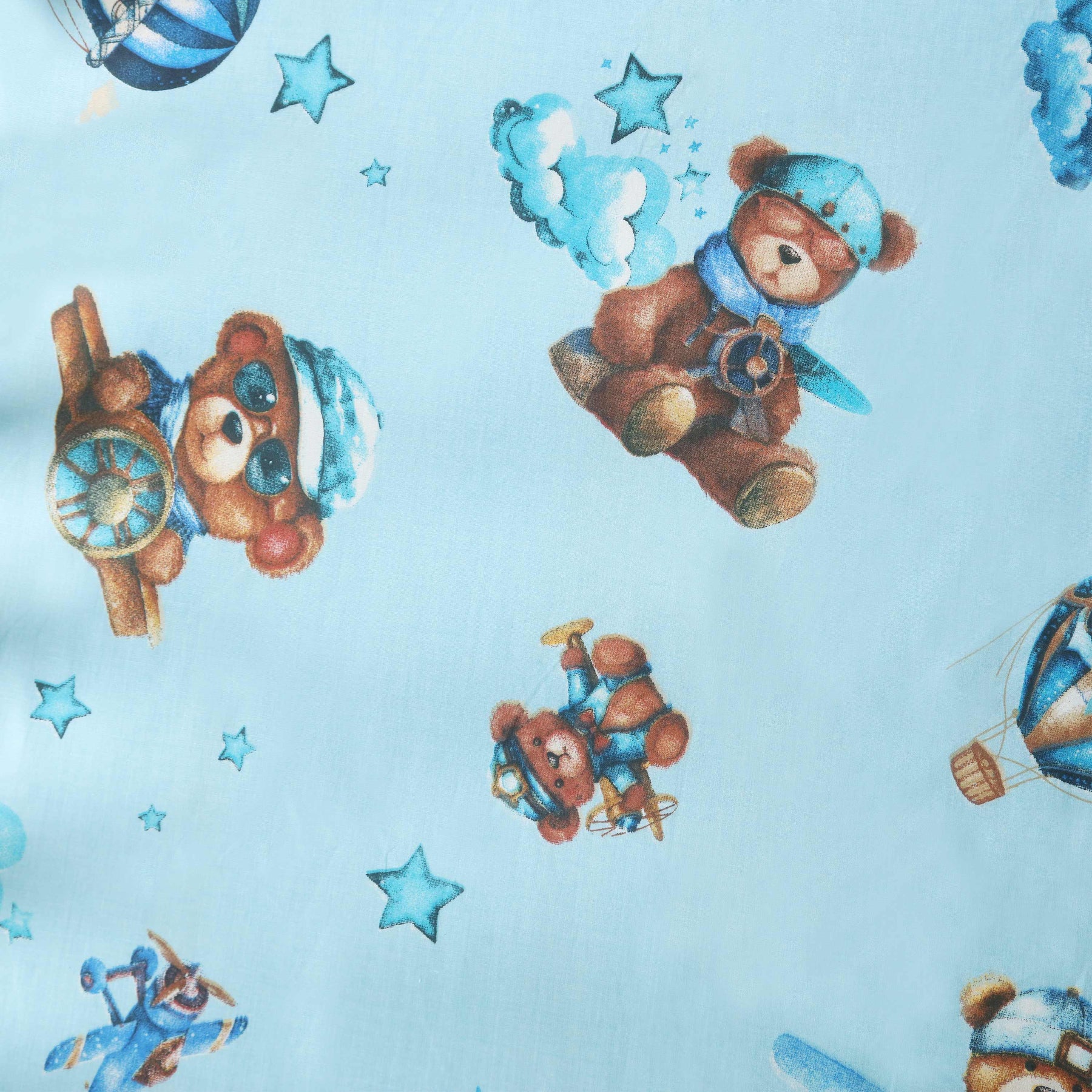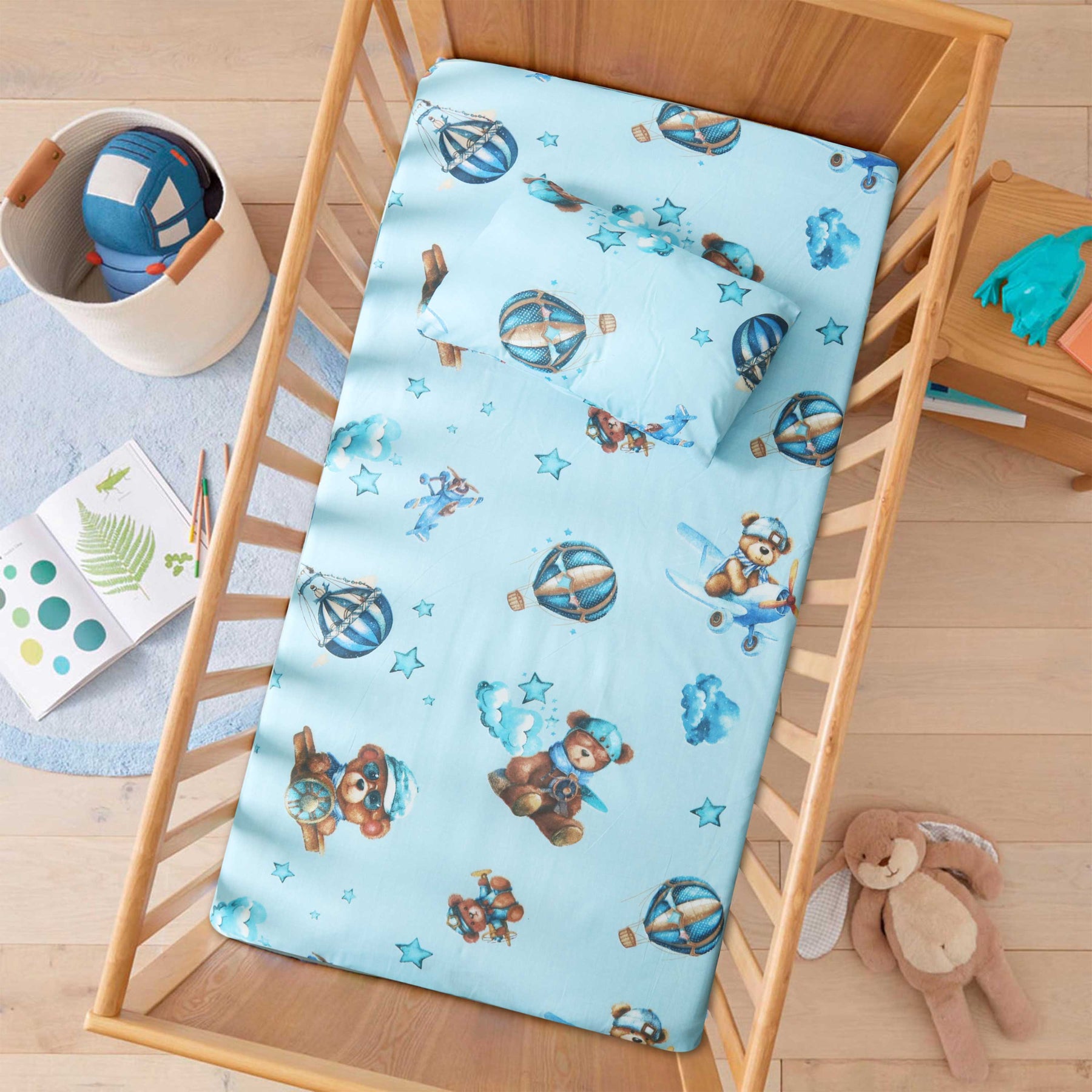Transform your baby’s crib into a cozy and playful space with this charming printed crib bedsheet set. Featuring adorable teddy bears on fun-filled hot air balloon and airplane adventures, it adds a delightful touch to any nursery.
