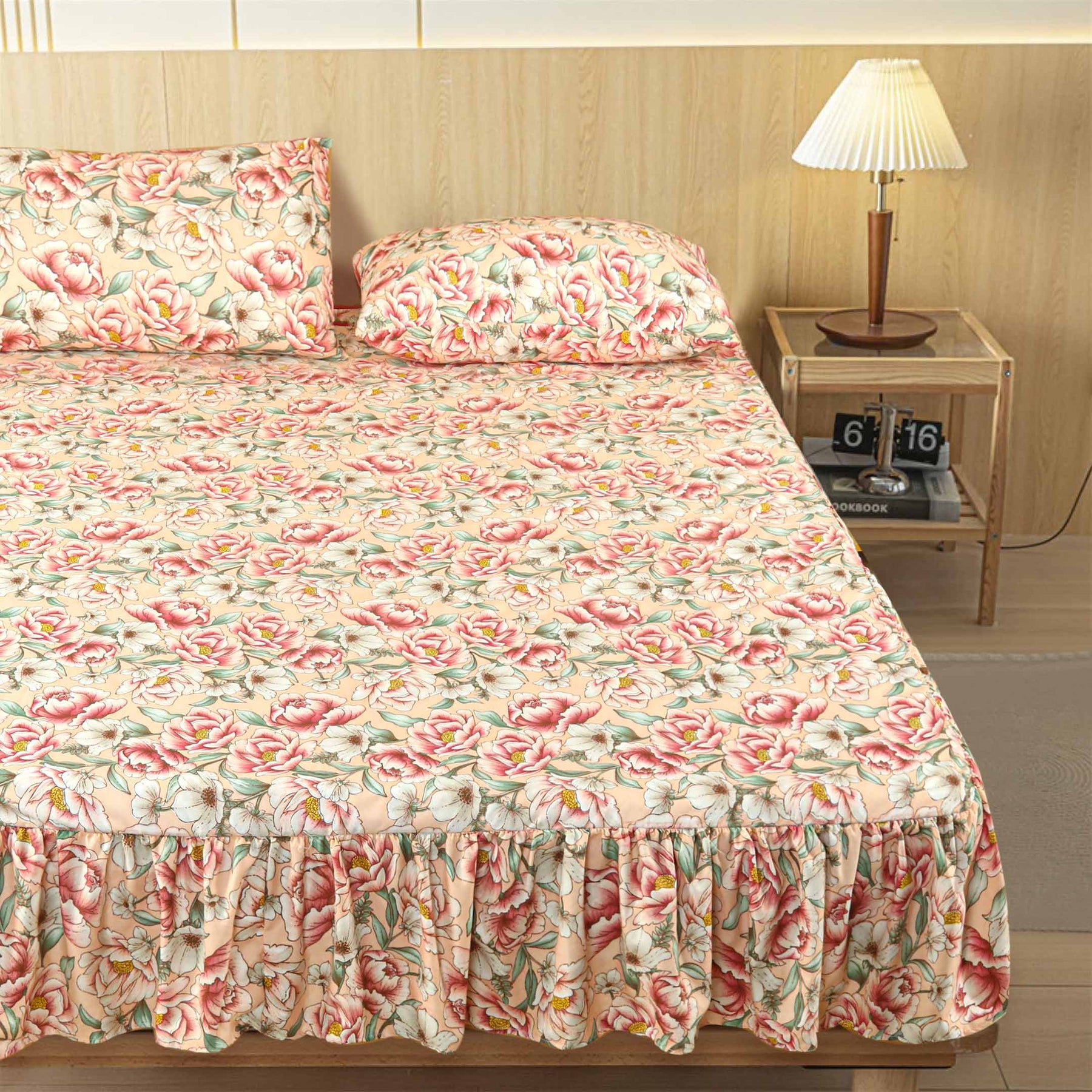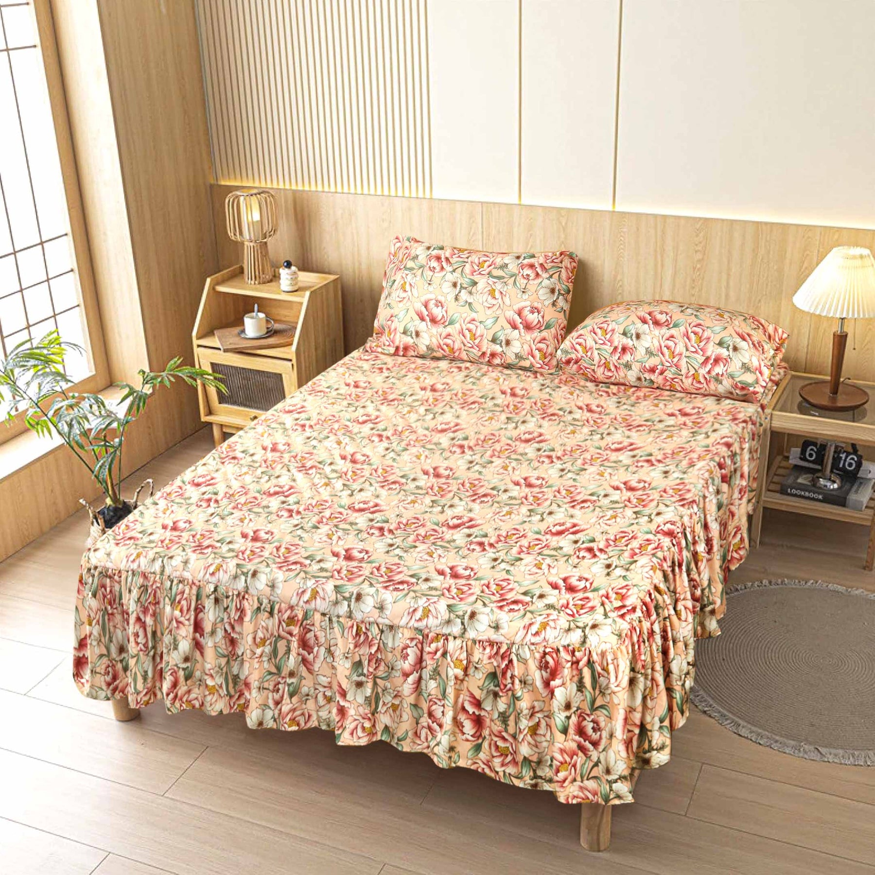Elevate your bedding ensemble with a touch of elegance and charm. Crafted from premium materials, these fitted sheets feature delicate ruffles along the edges, adding a subtle yet sophisticated flair to your bedding. Designed for both style and practicality, our ruffled fitted sheets are tailored to provide a snug fit for your mattress, ensuring a smooth and comfortable surface for a restful night's sleep. Transform your bedroom into a cozy haven of luxury with our Ruffled Fitted Sheets, where style meets comfort effortlessly.
