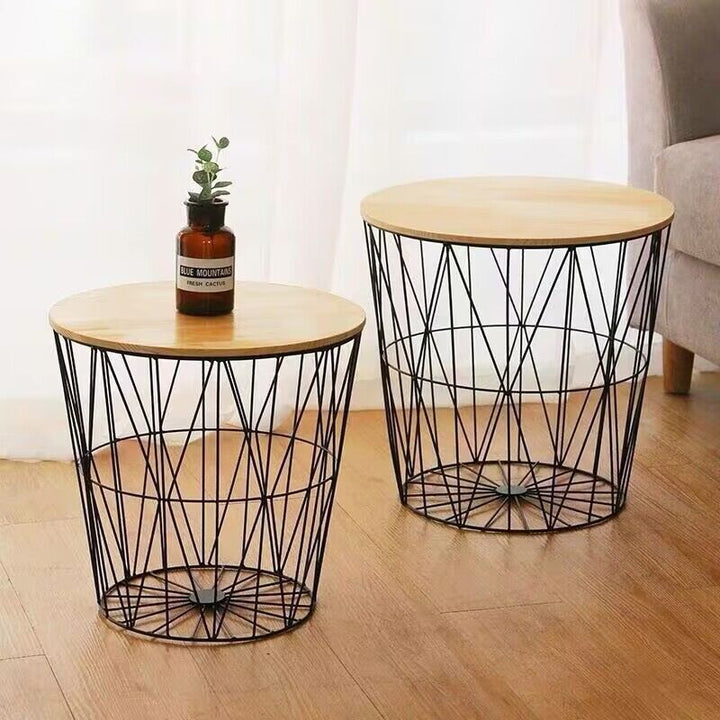 Light Luxury Multi-Functional Iron Art Bedside Table with Storage Basket and Cover