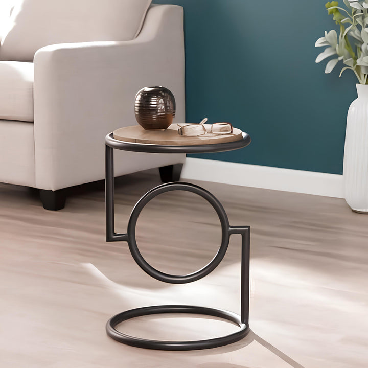 Make a striking statement in your home with the captivating Loop Frame Accent Table by . This isn't just a table; it's a piece of functional art, meticulously designed to be a conversation starter. Its distinctive interlocking loop base creates a dynamic visual interest, while the contrasting natural wood top provides a perfect platform for your most cherished decor. Ideal for those who appreciate modern design with an artistic flair.