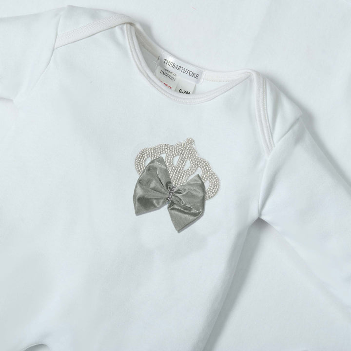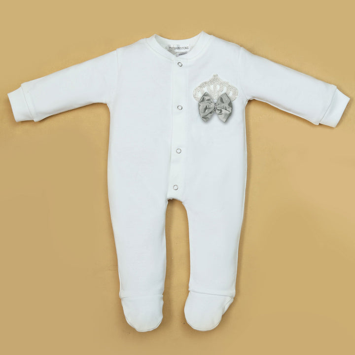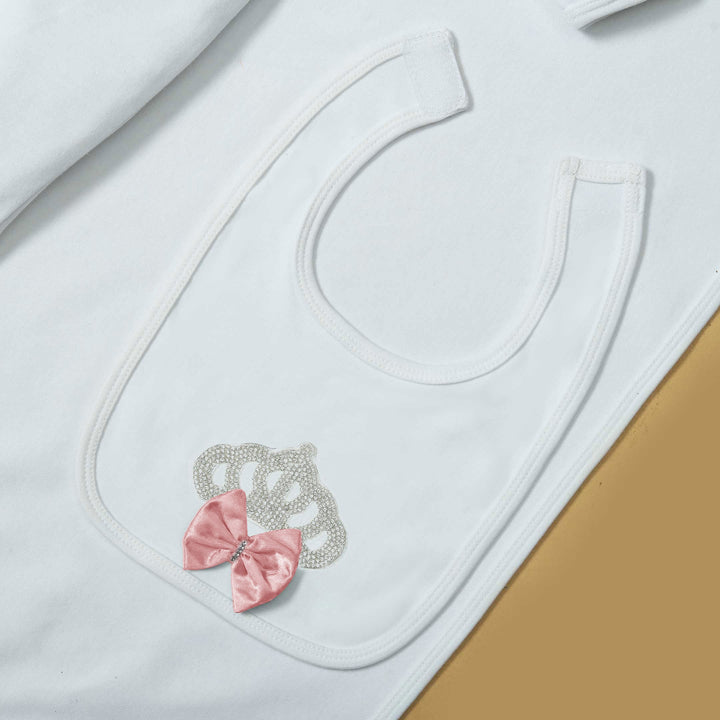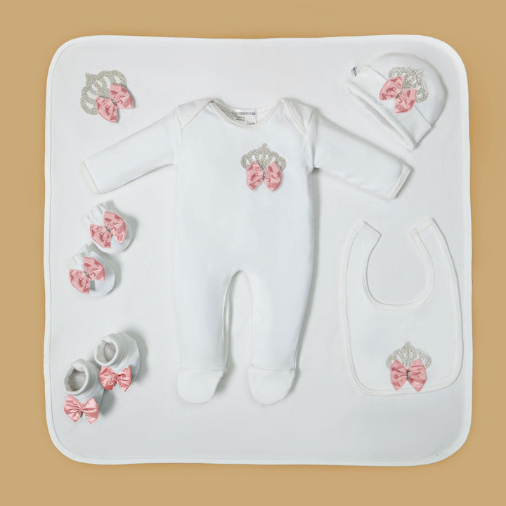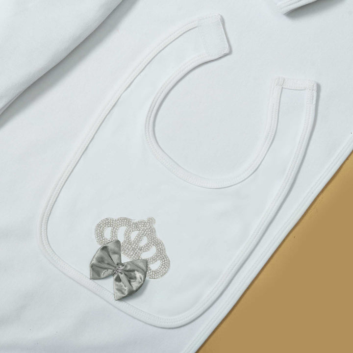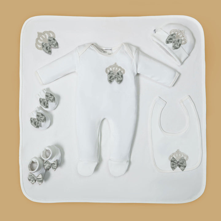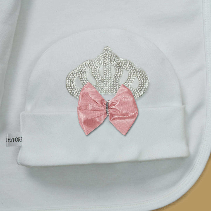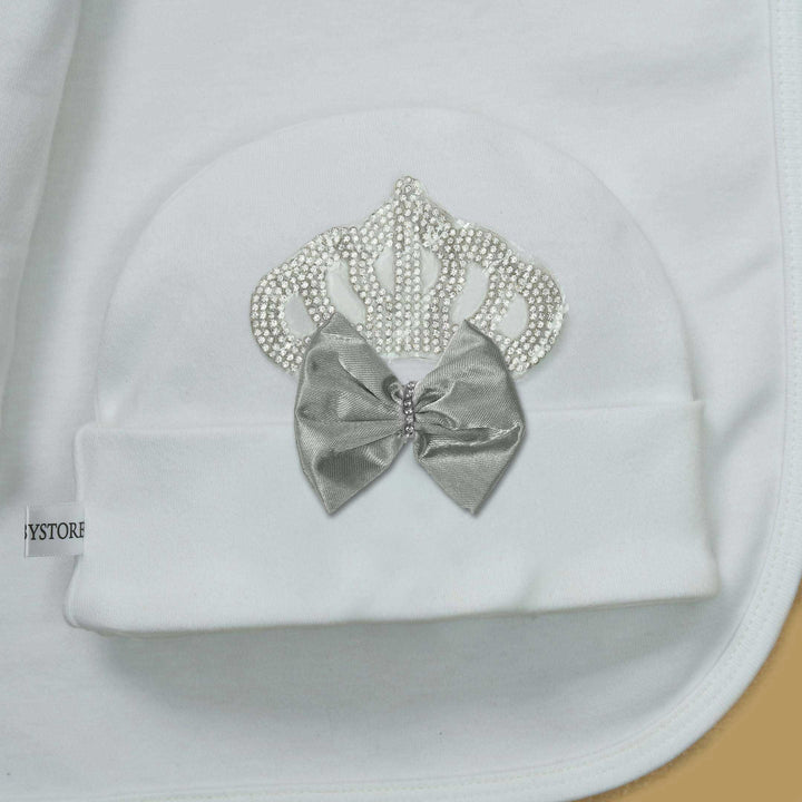This unique set with bedazzled crown will act perfectly as your baby’s first day set as well!