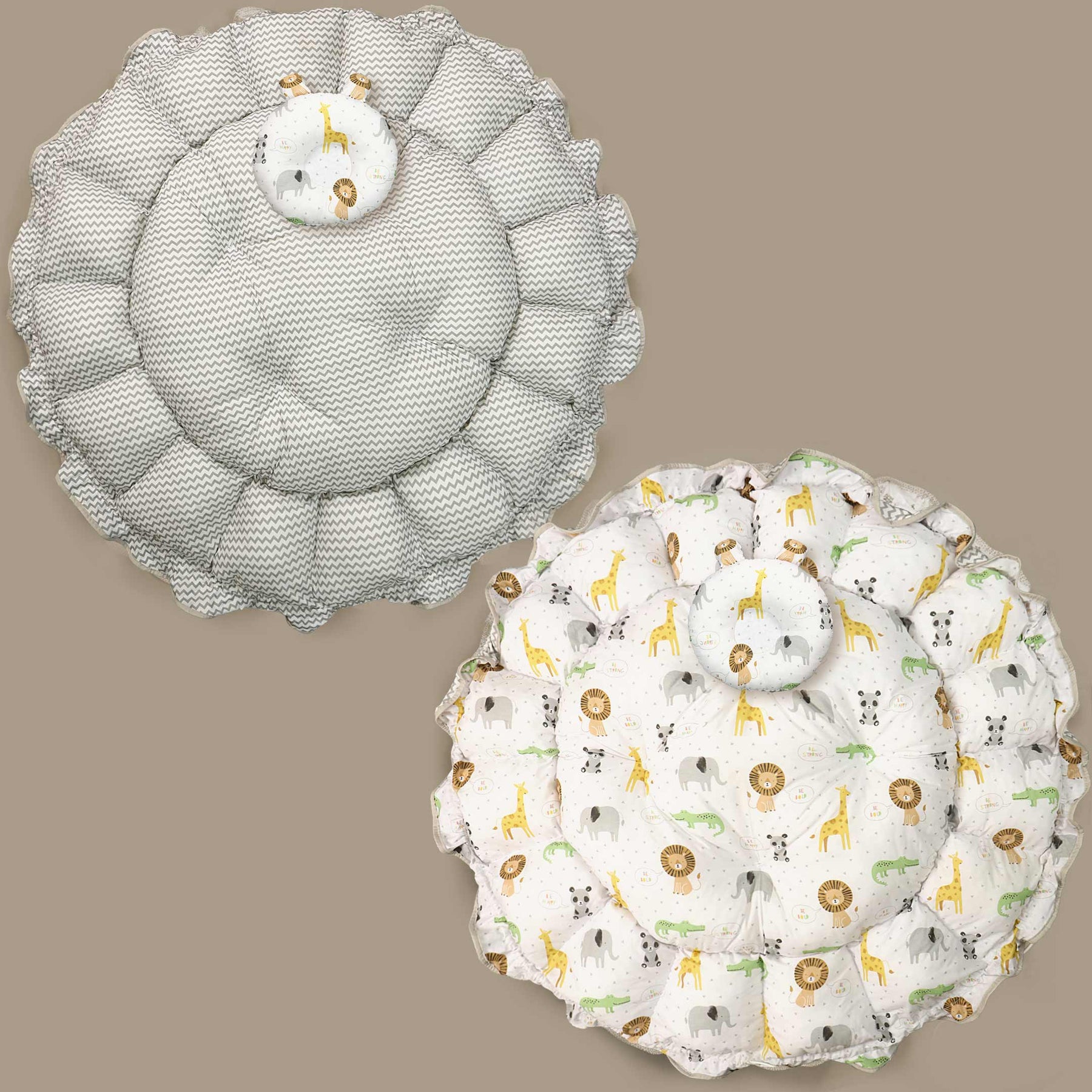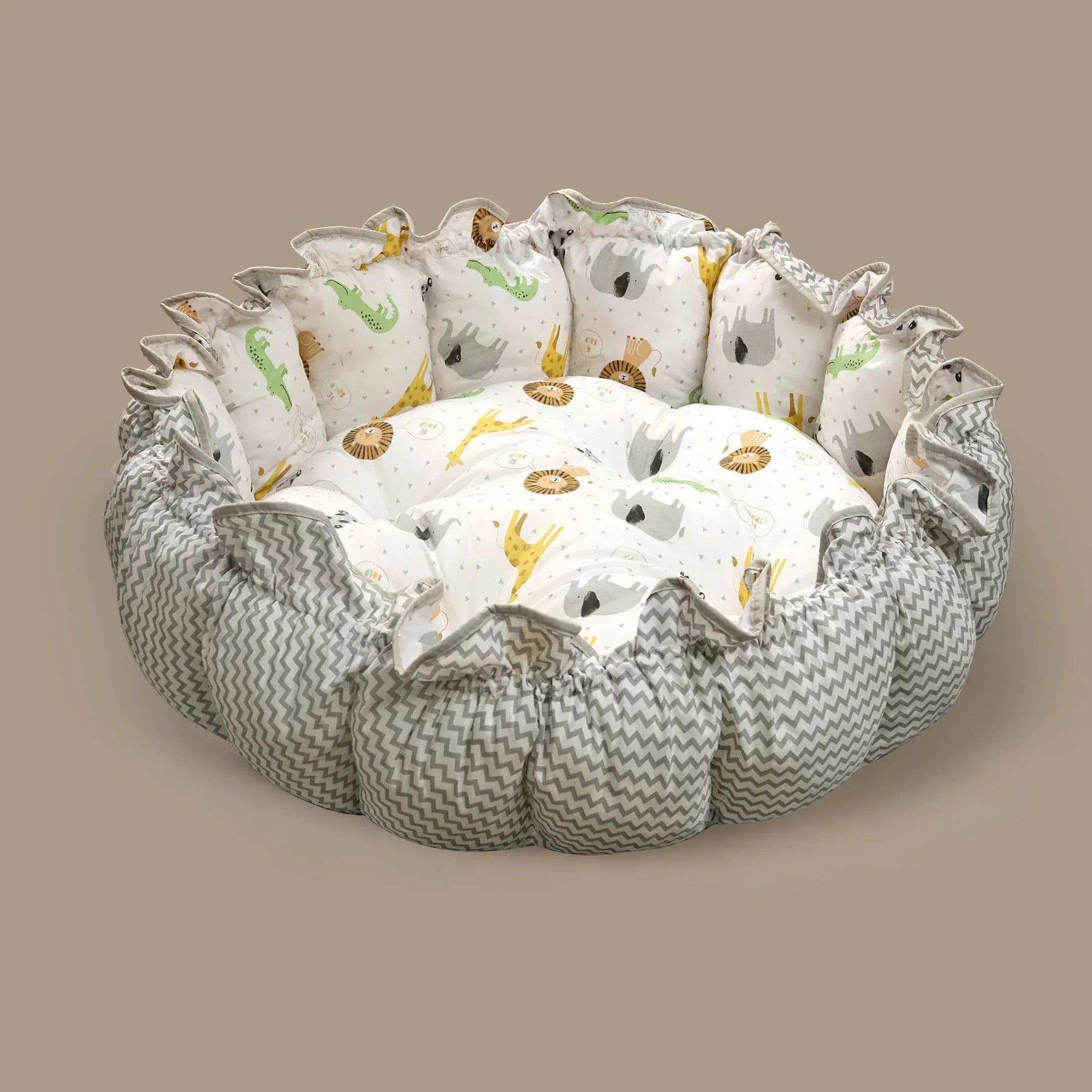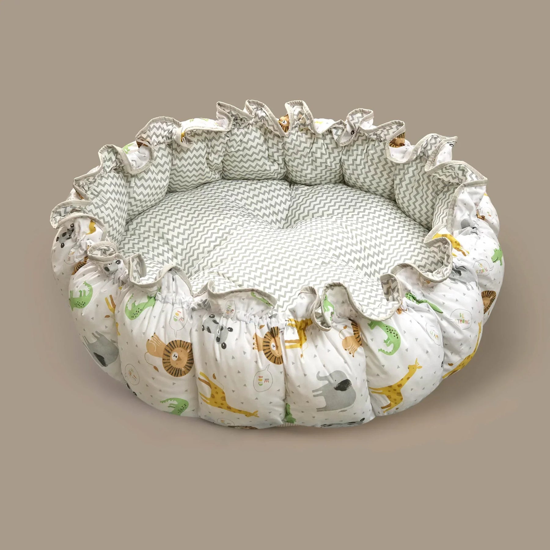 This Snuggle bed is designed by two in one. Two different prints used in this, so you can use this snuggle bed on both sides, Also you can used as a play matt.